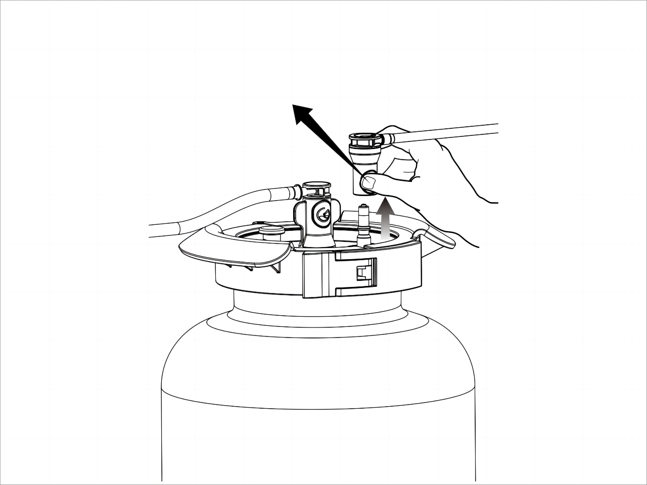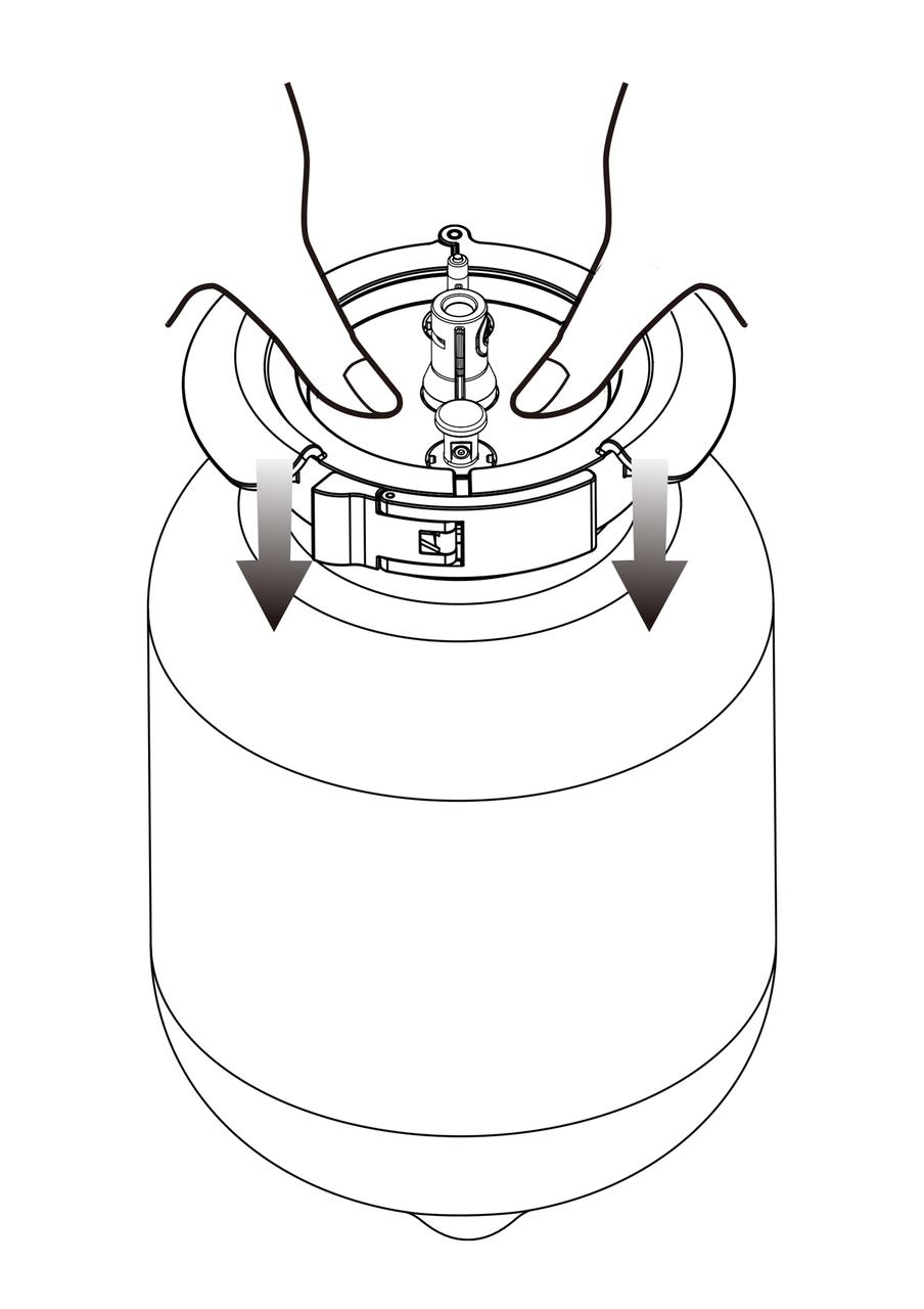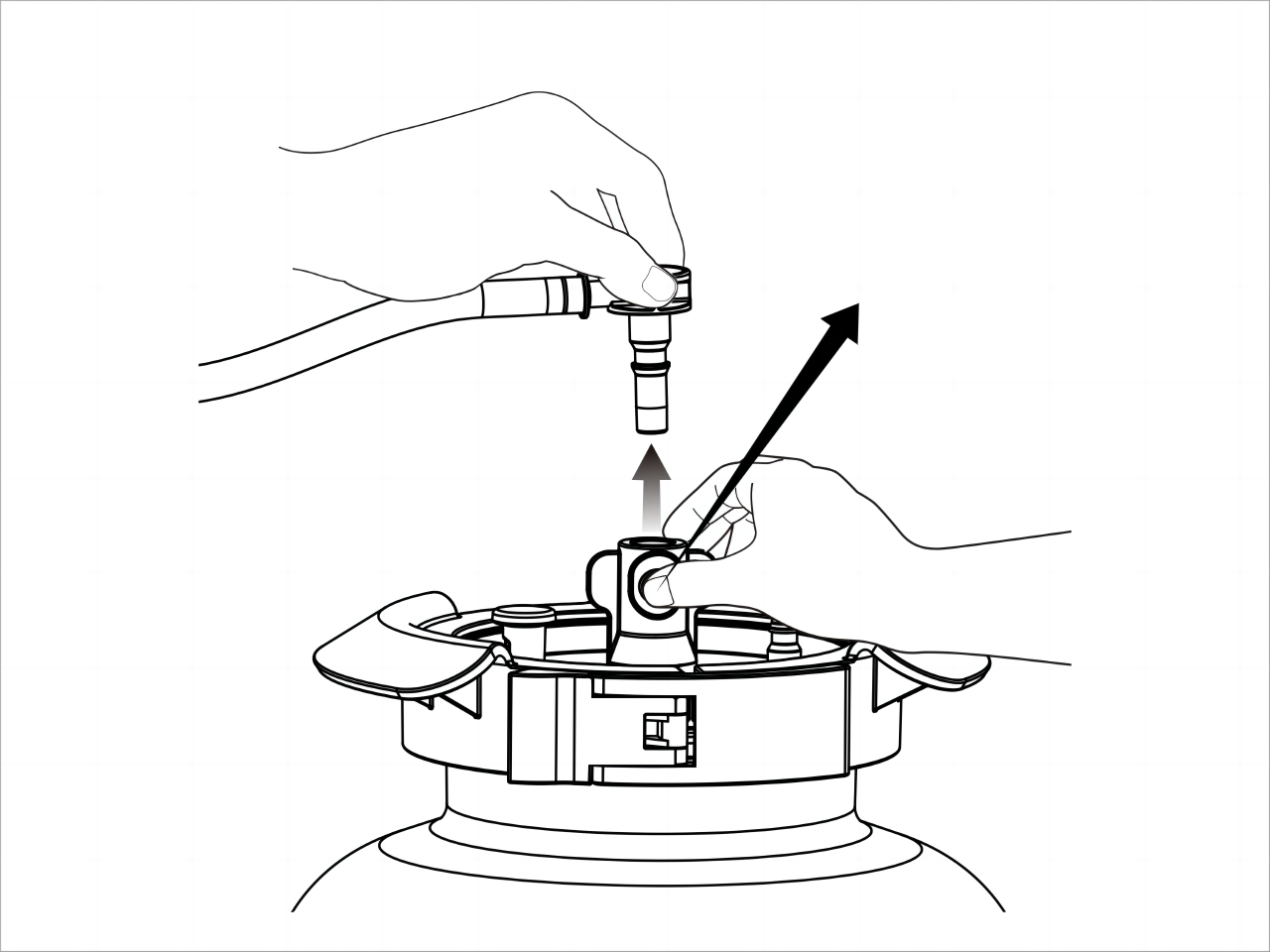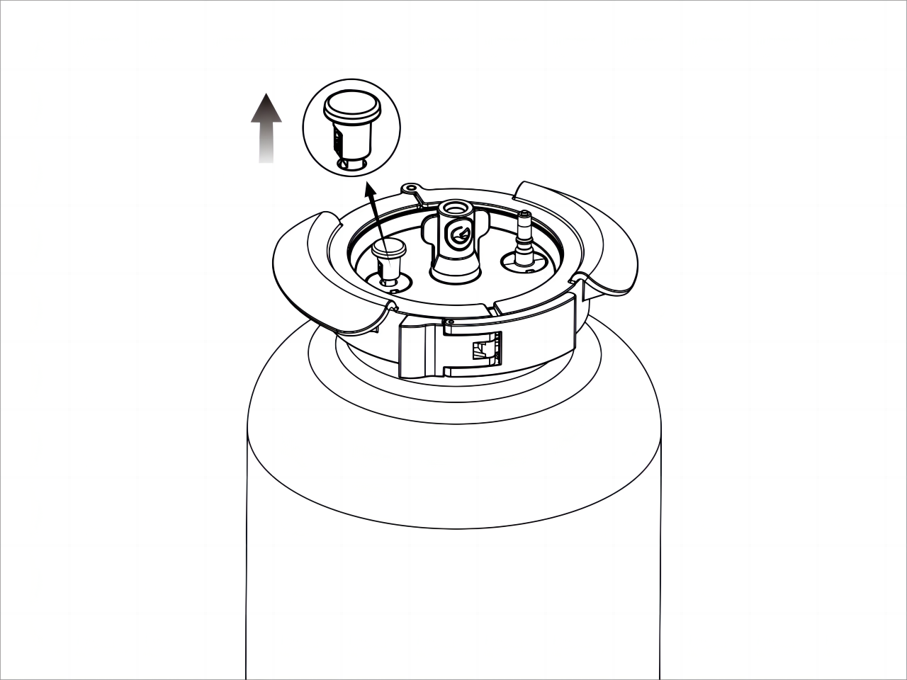 The dispensing outlet of the keg can be unscrewed counterclockwise and removed for cleaning. To keep both ends of the pressurized gas inlet properly connected, insert the dispensing tube plug into the keg’s dispensing outlet as shown in the diagram, and then clean them together as a single unit.